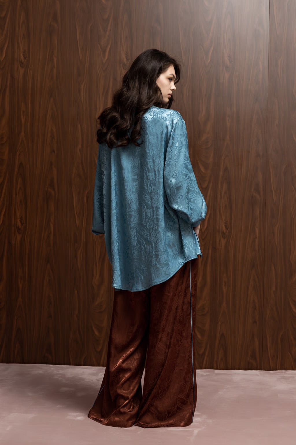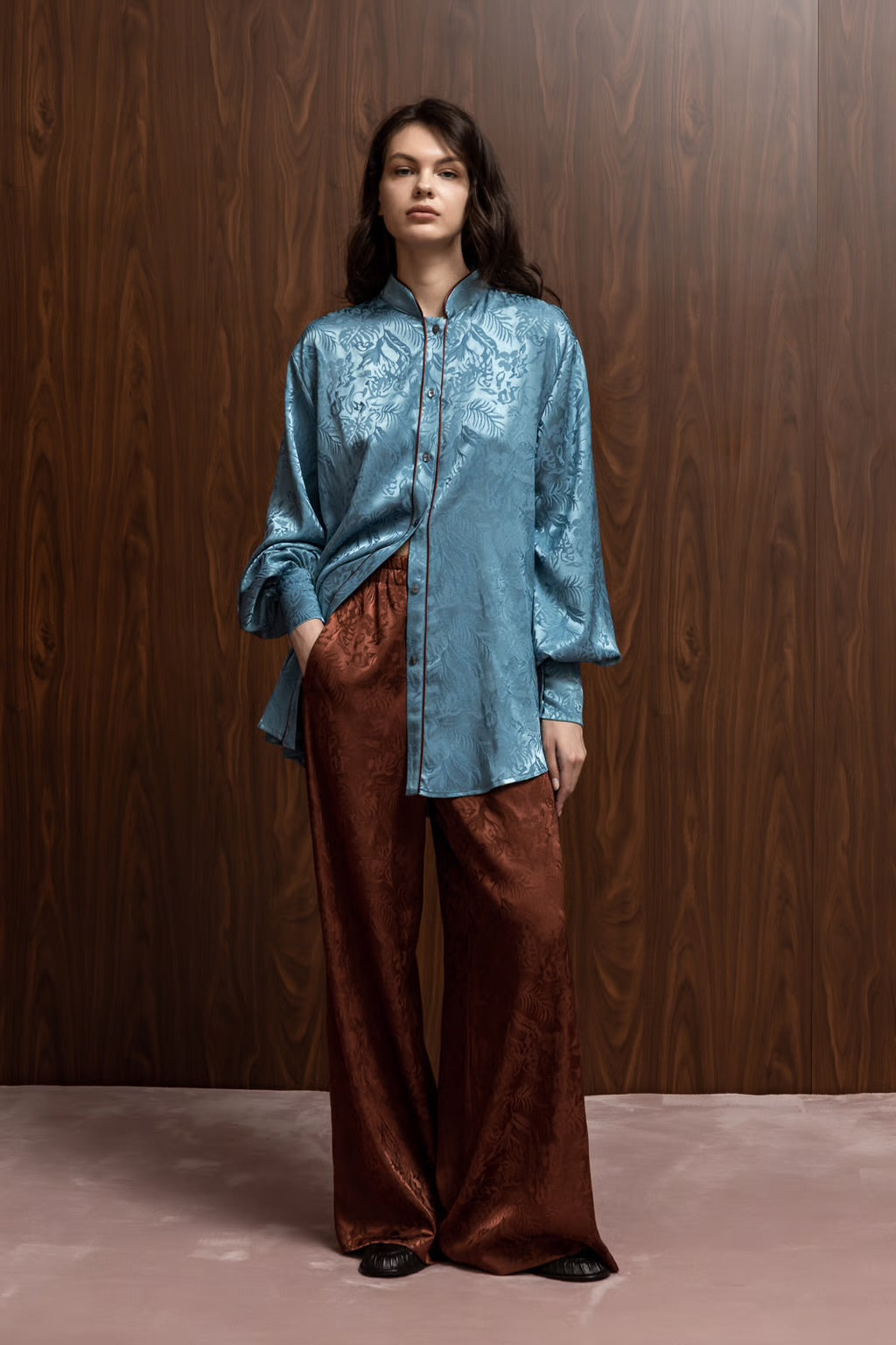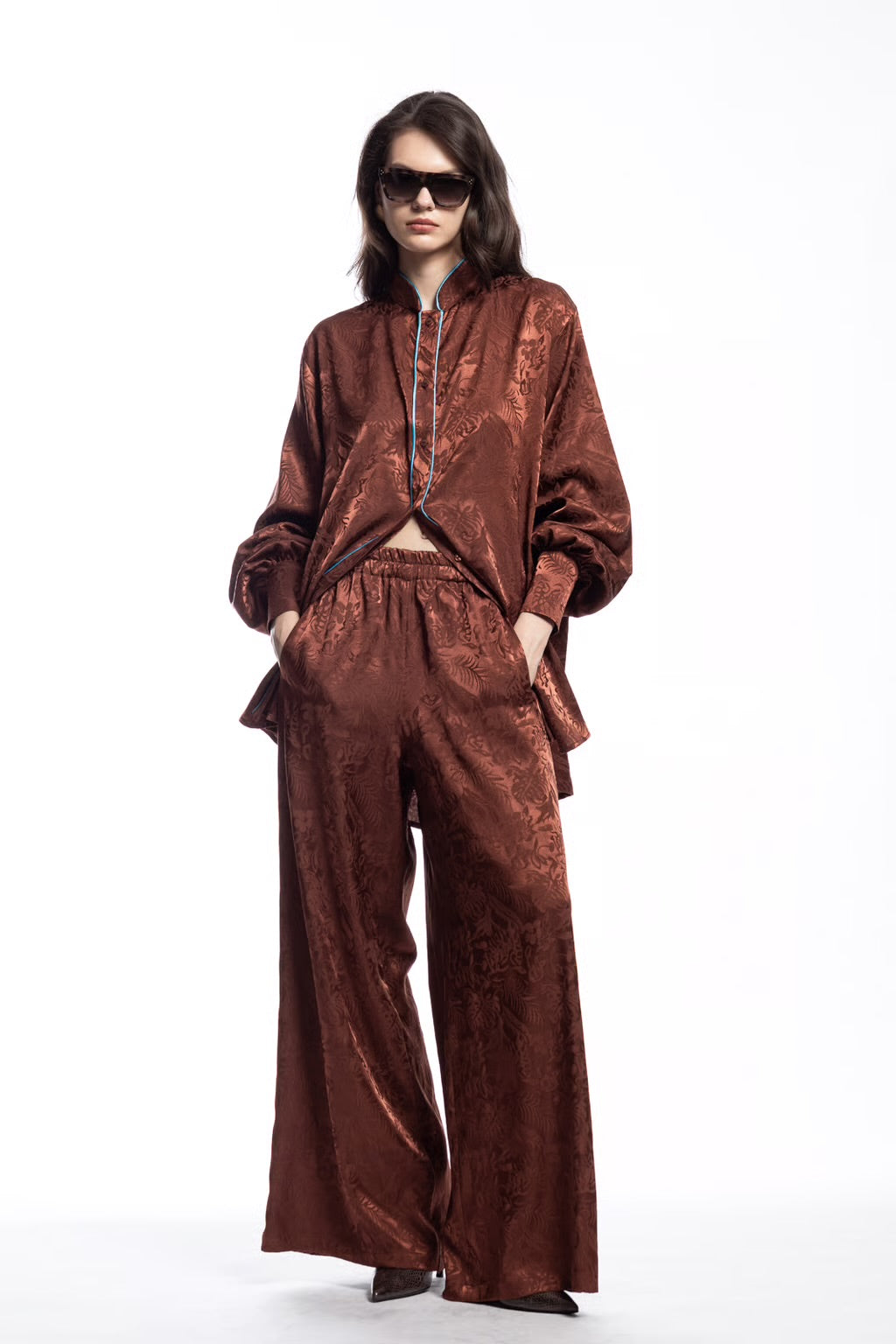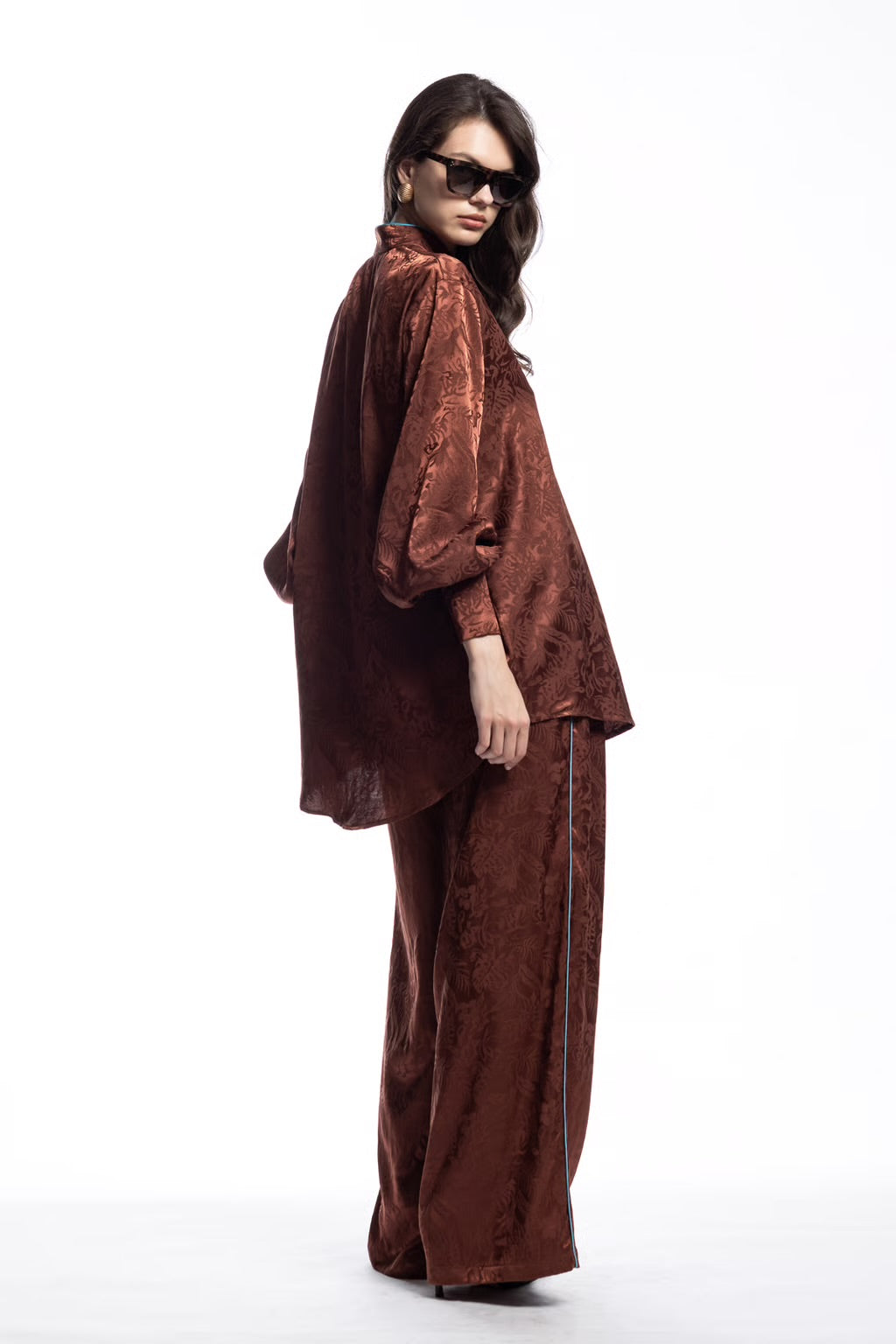 Παντελόνι ψηλόμεσο με λάστιχο στην μέση σε άνετη γραμμή με τσέπες στο πλάι. Λεπτομέρειες με διχρωμία στισ ραφές.