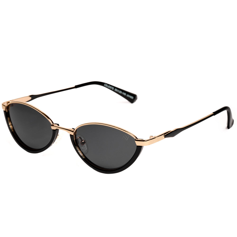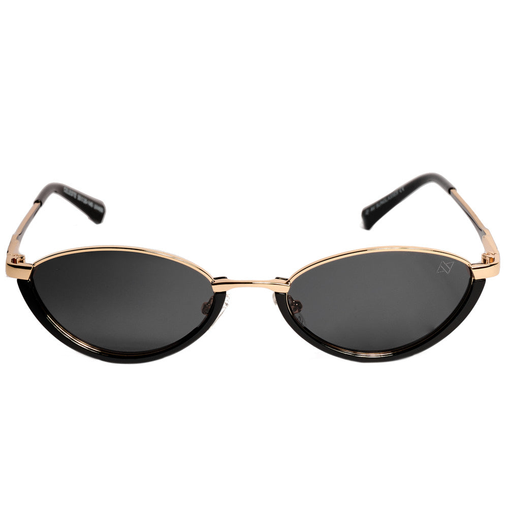 Modern cat-eye sunglasses with bold design and timeless elegance. The sleek black lenses are complemented by a sophisticated gold metal frame, making them the perfect accessory for both everyday wear and special occasions.