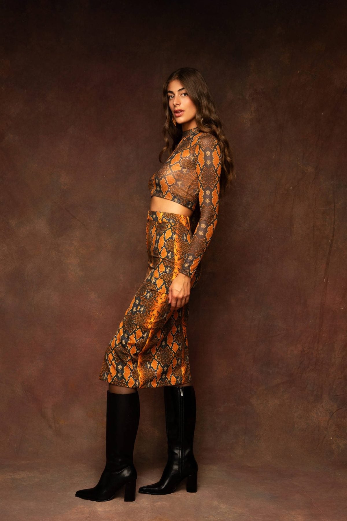 Μακρυμάνικη διαφάνεια από ελαστικό ύφασμα και ψηλή λαιμόκοψη σαν ζιβάγκο.