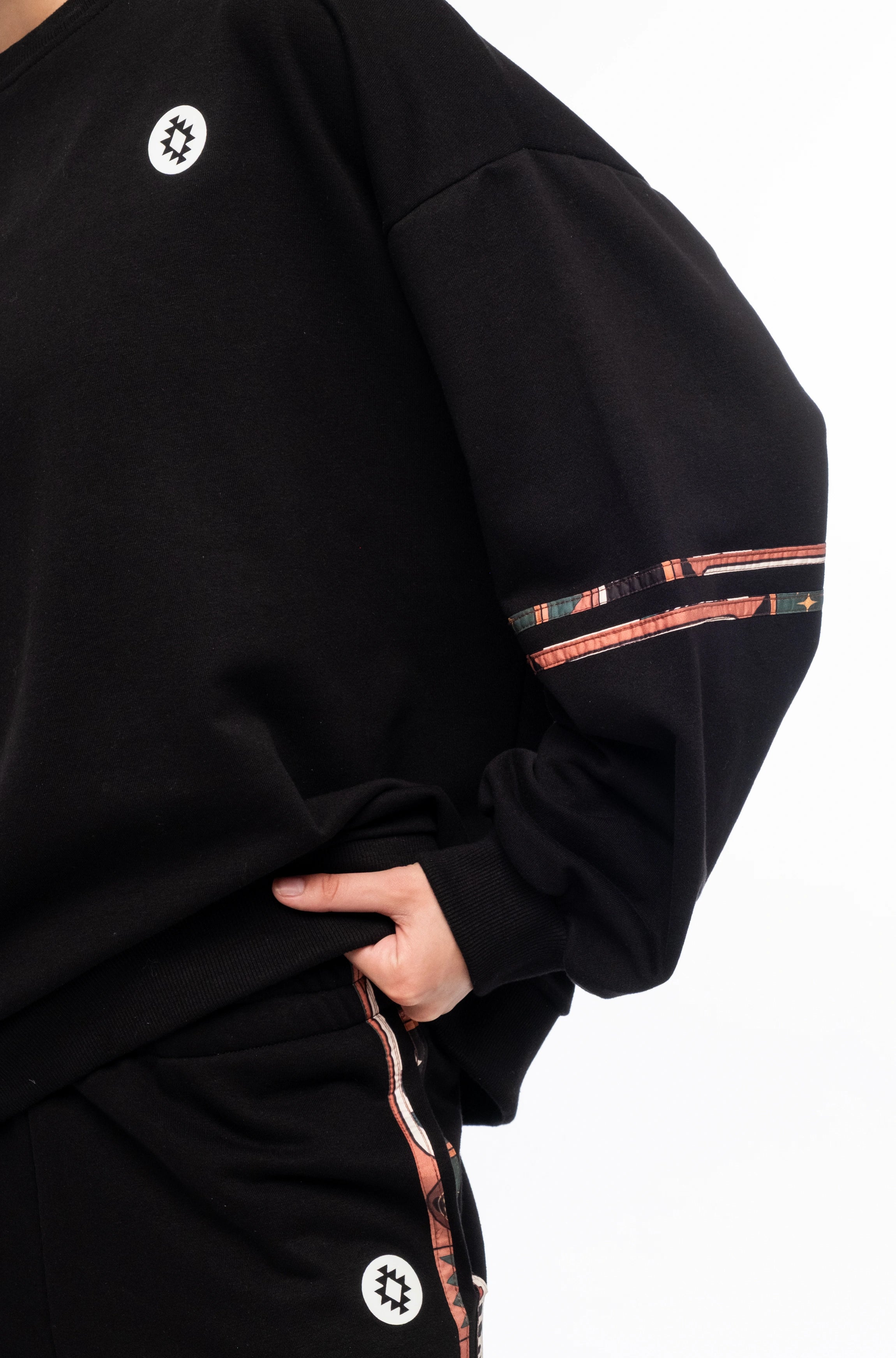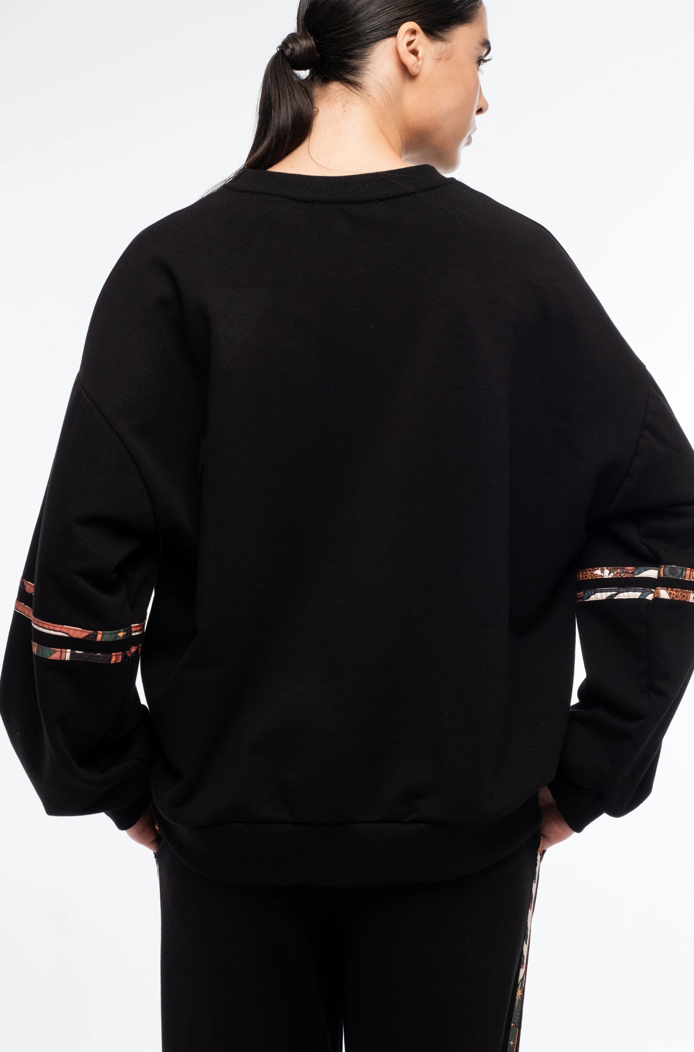 Our Panther Sweatshirt has classic details combined with P+C style such as a crew neck and rib cuffs, and a vinyl logo Chaka stamp. This black cotton blend sweatshirt has a comfortable fit and dropped sleeves with an all-over printed trim detailing. Wear them as a set with Panther Sweatpants and Energy Socks for sporty streetwear.