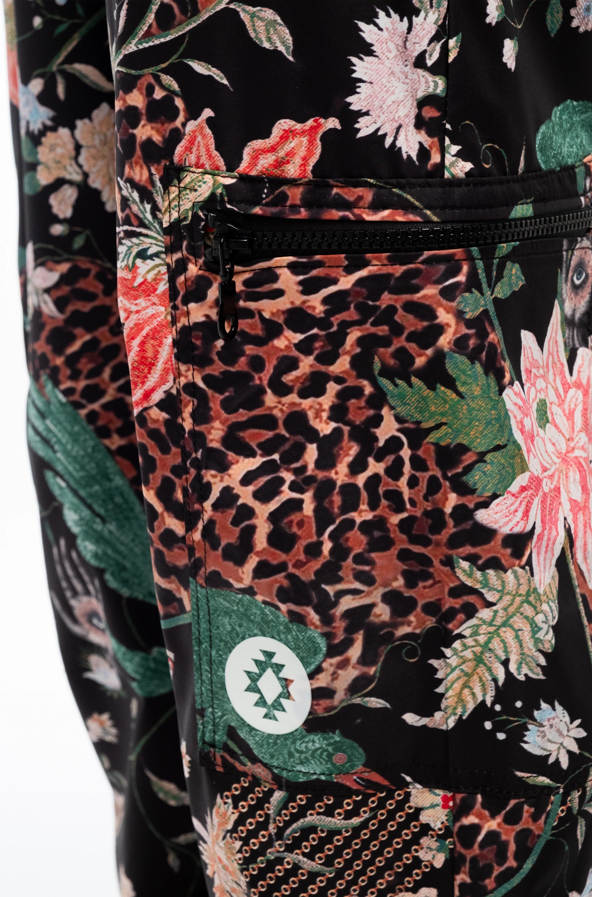 Hit the ground running with our Sacred Wild Training Pants. Designed for a loose fit, they feature an elasticated waistband and cuffs for easy movement. Functional details include side seam pockets and a mid-leg pocket with a chunky zip. The vibrant flora and fauna print, paired with our signature vinyl Chaka logo stamp, bring an exotic vibe. The ankle length makes them perfect for showing off our 3rd Eye Socks. Complete the look by pairing them with the matching Sacred Wild Training Jacket and Sports Top.